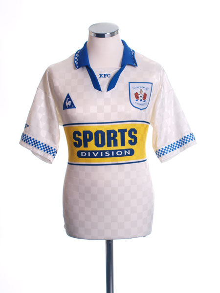 Details - Home shirt as worn when Kilmarnock finished 4th in the Scottish Premier Division, qualifying for the UEFA Cup, and were knocked out in the fourth round of the Scottish Cup, losing 2-0 against Ayr United after winning the competition in the previous season. Also worn when Kilmarnock were knocked out in the first round of the UEFA Cup Winners' Cup, losing 4-2 on aggregate against Nice.