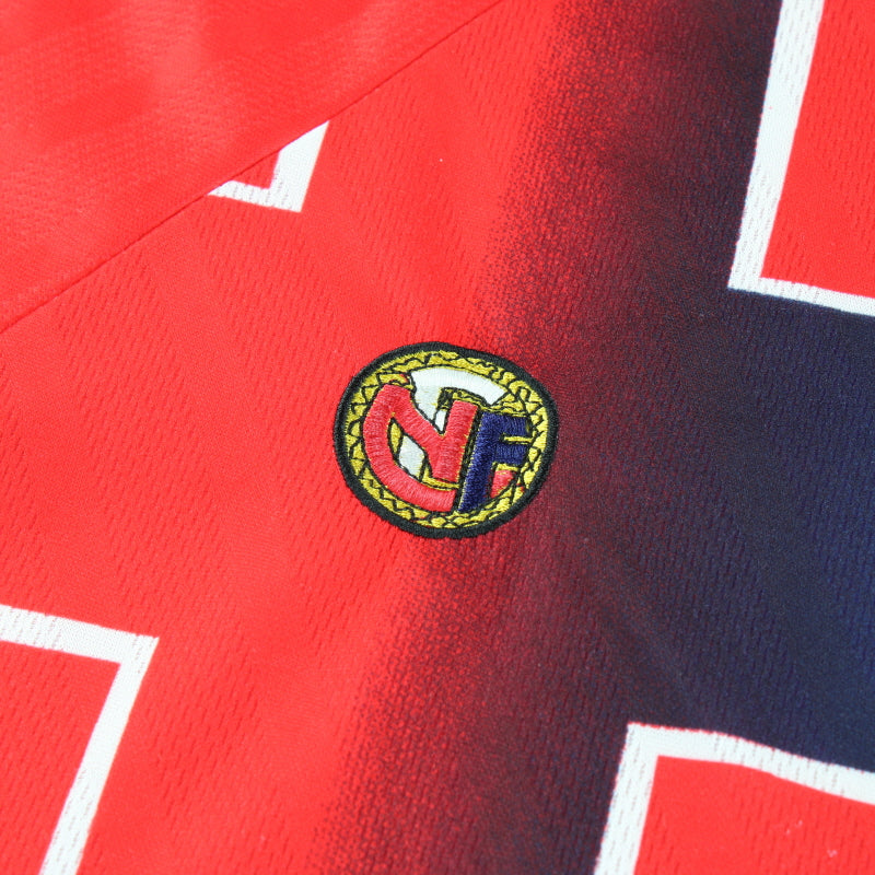 Details - Home shirt as worn during qualification for the 1998 World Cup when Norway successfully qualified for the competition, finishing top of their qualification group ahead of Hungary.
