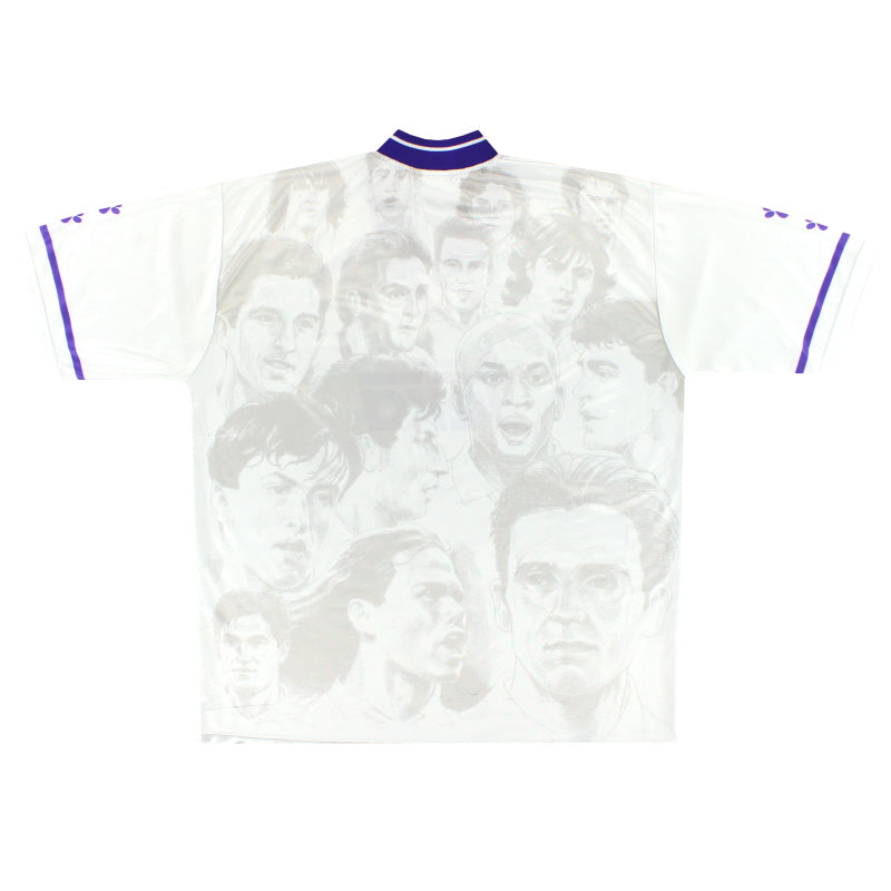 Details - Training shirt relaeasd to celebrate their League victory. As worn when Jupp Heynckes took over as Real Madrid manager, failing to defend their La Liga title from the previous season, finishing 4th in the league. However, the club did manage to win their 7th European title, beating Juventus 1-0 in the Champions League final with Predrag Mijatovic scoring the only goal of the game. The club's European triumph was not enough to save Heynckes from the sack at the end of the season after a poor domestic campaign.