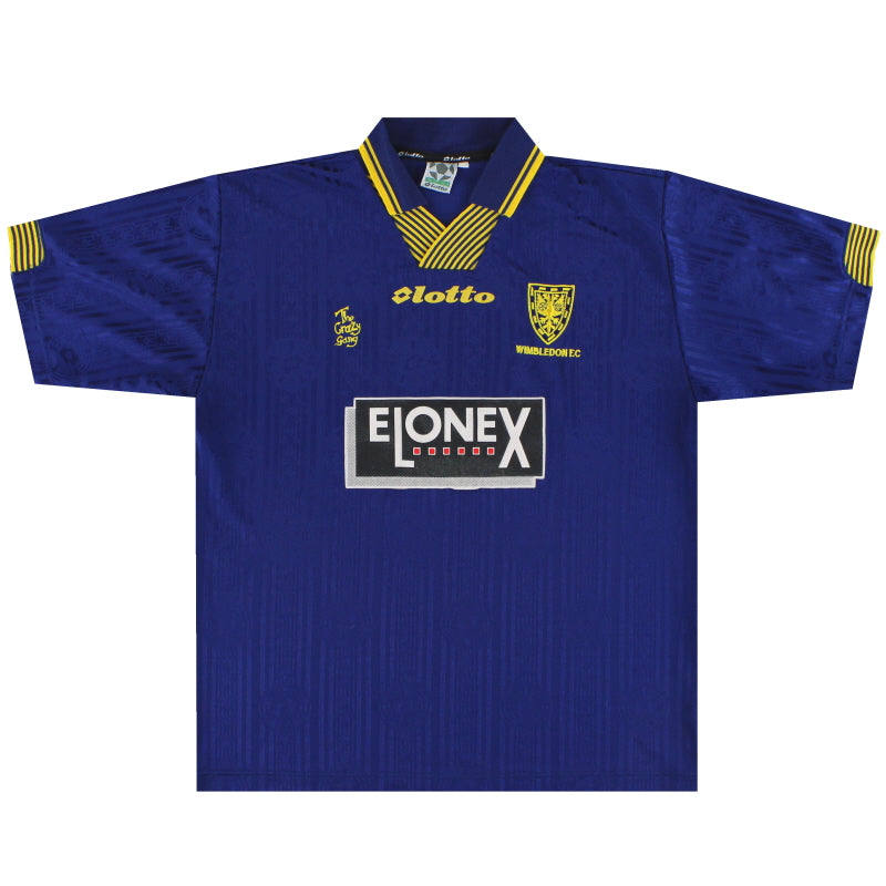 Details - Home shirt as worn when Wimbledon finished 15th and 16th in the Premier League in respective seasons and were knocked out in the semi finals of the 1998-99 League Cup, losing 1-0 on aggregate against Tottenham Hotspur.