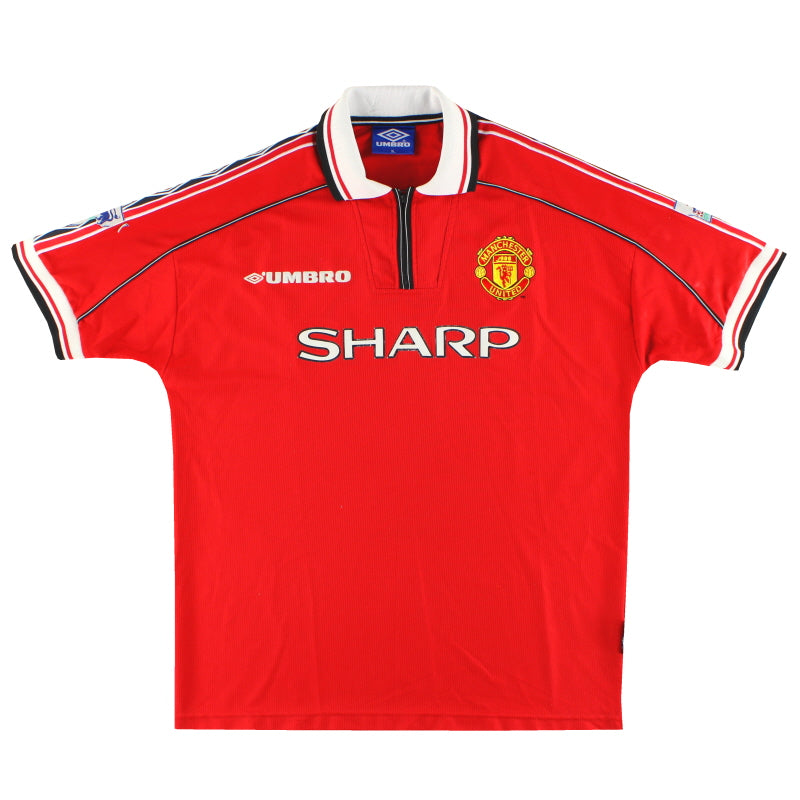 Classic Home shirt as worn when United made history by becoming the first English team to complete the treble. The league title was contested all the way until the final game of the season where only a win would be enough with only a point separating top two. A 2-1 win saw United crowned Champions of England. The FA Cup saw United win 2-0 in the final before being crowed champions of Europe four days later in dramatic fashion after two stoppage time goals.