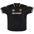 Details - Third shirt as worn when United made history by becoming the first English team to complete the treble. The league title was contested all the way until the final game of the season where only a win would be enough with only a point seperating United and Arsenal. A 2-1 win over Spurs saw United crowned Champions of England. The FA Cup saw United face Newcastle at Wembley where The Red Devils showed exactly why they were League Champions with a 2-0 win. Fours days later the treble was complete.
