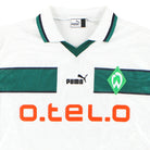 Details - Away shirt as worn when Werder Bremen finished 13th in the Bundesliga and also won the DFB-Pokal, beating Bayern Munich 5-4 on penalties after the game finished 1-1 after extra time. Also worn when Werder Bremen were knocked out in the second round of the UEFA Cup, losing 4-3 on aggregate against Marseille.