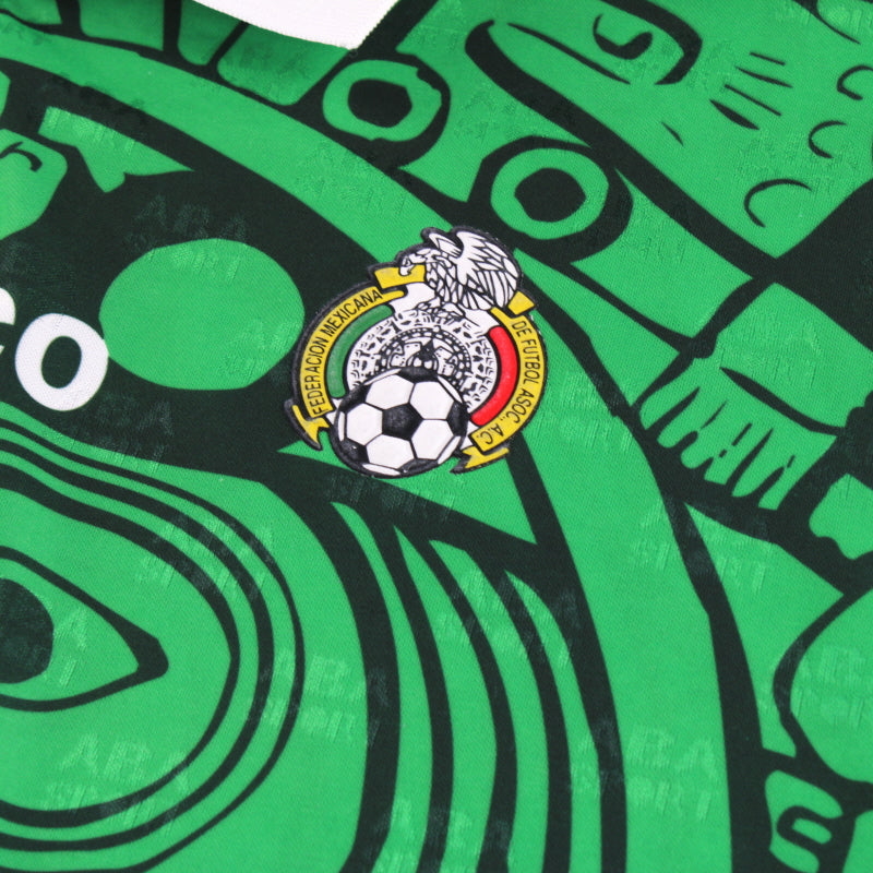 Details - Rare home shirt with Aztec design as worn when Mexico competed in the 1998 World Cup, being knocked out in the last 16 of the competition after losing 2-1 against Germany.