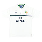 Details - Away shirt as worn when Ireland were attempting to qualify for the 2000 European Championship, failing to qualify for the tournament after finishing as runners up in their qualification group and being knocked out on away goals against Turkey in a play off after the tie finished 1-1 on aggregate.