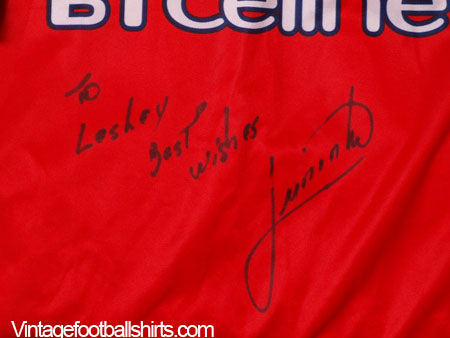 Player Features - Juninho #23 to reverse in official Lextra felt print, Premier League patches to sleeves, signed to the front 'To Lesley best wishes Juninho'