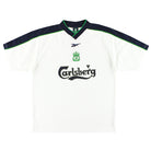 Details - Training shirt as worn when Gerard Houllier began to rebuild his side with some new signings, the side improved on the previous season, finishing 4th in the Premier League before the shirt was used as a third shirt the next season when Liverpool finished 3rd in the Premier League and won a treble of cups winning the FA, League and UEFA Cup, beating Arsenal, Birmingham City and Alaves respectively.