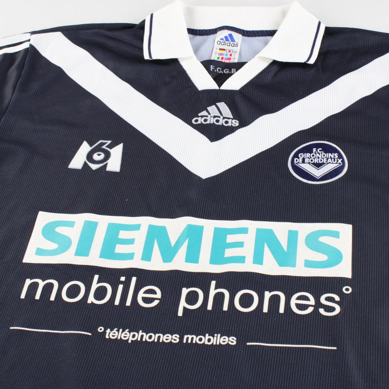Details - Home shirt as worn when Bordeaux finished 4th in the French Division 1 and were knocked out in the last 32 of the Coupe de France, losing 1-0 against Nantes. Also worn when Bordeaux were knocked out in the fourth round of the UEFA Cup, losing 6-2 on aggregate against Rayo Vallecano.