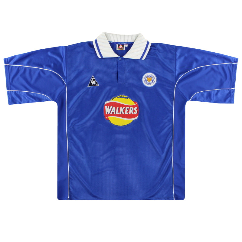 Details - Home shirt as worn when Leicester City finished 13th in the Premier League and also made it to the quarter finals of the FA Cup, losing 2-1 against Wycombe Wanderers. Also worn when Leicester were knocked out in the first round of the UEFA Cup, losing 4-2 on aggregate against Red Star Belgrade.