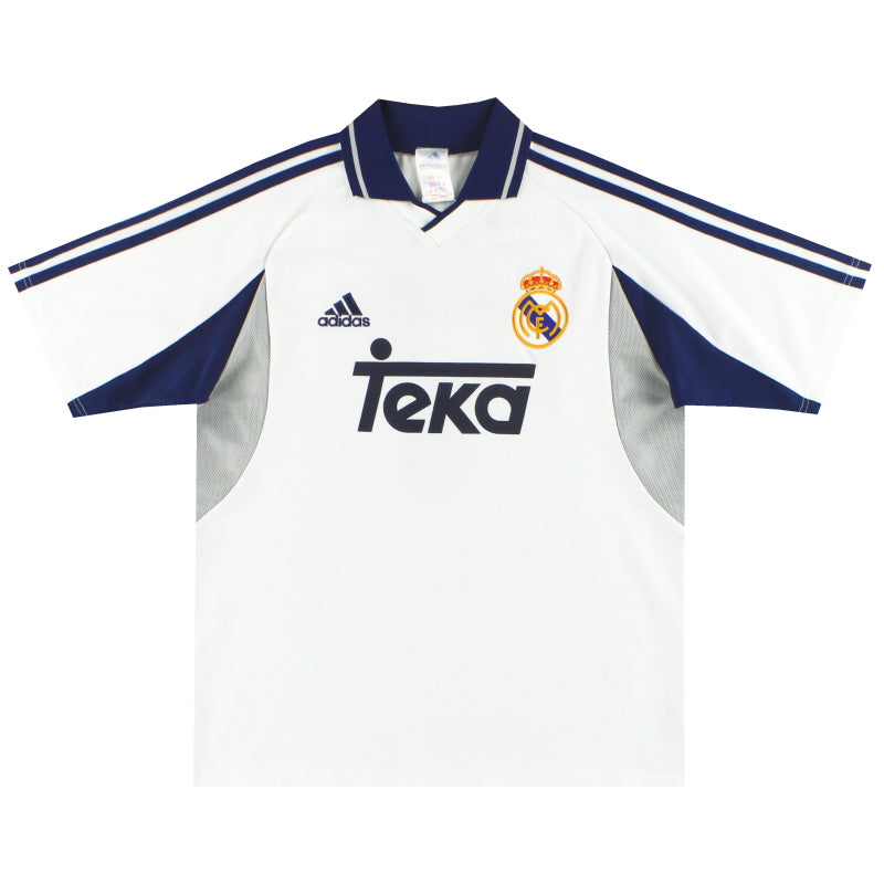 Details - Classic home shirt as worn in Vincent del Bosque's first full season in charge of Real Madrid after winning the club's eighth European title in the previous season. The 2000-01 season saw Real Madrid win their first La Liga title in 4 seasons as they finished 7 points clear of second placed Deportivo La Coruna, they could not however defend their European title, being knocked out in the semi finals of the Champions League where they lost 3-1 on aggregate against Bayern Munich.