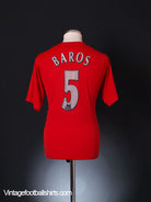Details - Home shirt as worn when new manager Rafa Benitez took charge leading Liverpool to a Champions League triumph, beating AC Milan in a dramatic final after coming back from 3 goals down at half time to win 3-2 on penalties and also won the 2006 FA Cup final beating West Ham United 3-1 on penalties in the last FA Cup final to be held at the Millennium Stadium.