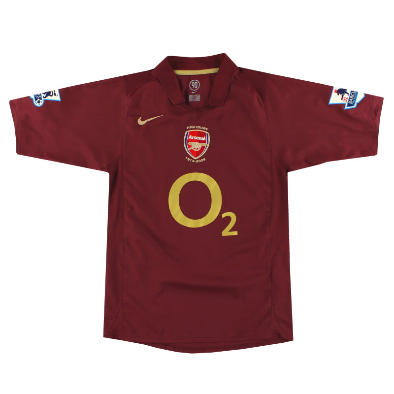 Redcurrant home shirt released to mark Arsenals last season at Highbury, features 'HIGHBURY 1913-2006' embroidered around club crest, and also to rear of shirt, collectable!