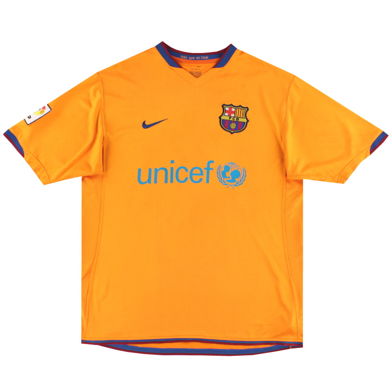 Details - Away shirt as worn when Barcelona finished as runners up in La Liga in the 2006-07 season, missing out on the title due to having worse head to head record against Real Madrid, before finishing 3rd in the next season. Also worn when Barcelona were knocked out in the semi finals of the 2007-08 Champions League, losing 1-0 on aggregate against Manchester United.
