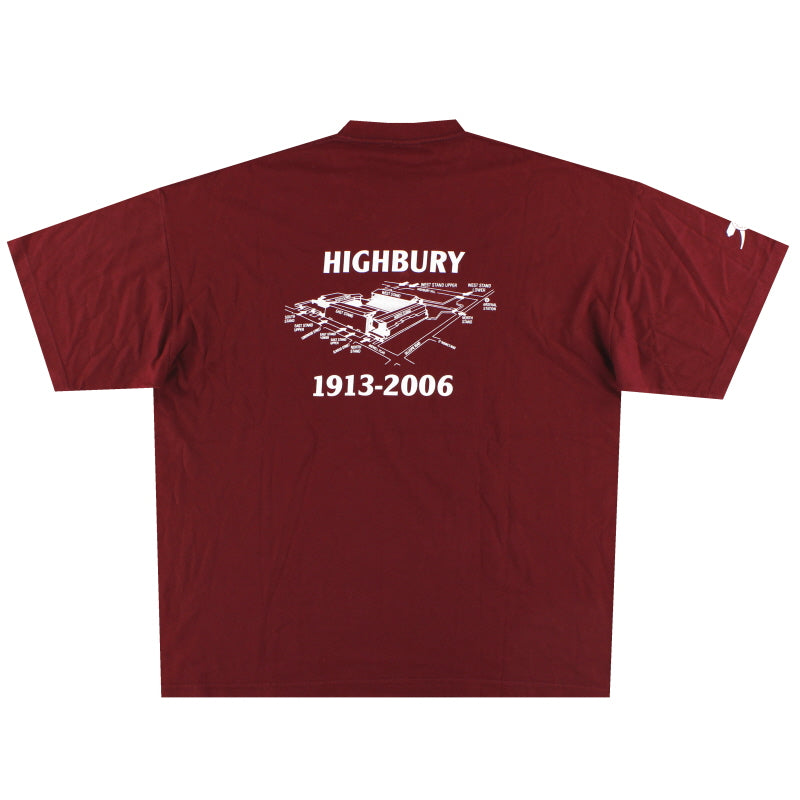 Details - Graphic tee released for the final game at Highbury when Arsenal faced Wigan Athletic in the last game of the 2005-06 season. The game finished 4-2 to Arsenal with Thierry Henry scoring a hat trick after Robert Pires opened the scoring for Arsenal.