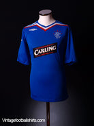 Details - Home shirt as worn when Rangers finished as runners up in the Scottish Premier League, finishing 3 points behind champions Celtic, and won both the Scottish Cup and Scottish League Cup, beating Queen of the South and Dundee United in the respective finals. Also worn when Rangers made it to the final of the UEFA Cup, losing 2-0 against Zenit Saint Petersburg, after finishing 3rd in their Champions League group.