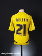 Features - Milletti #21 to reverse in official plastic print, Football League patches to both sleeves, 'Back in the Football League 2008' embroidered below club crest