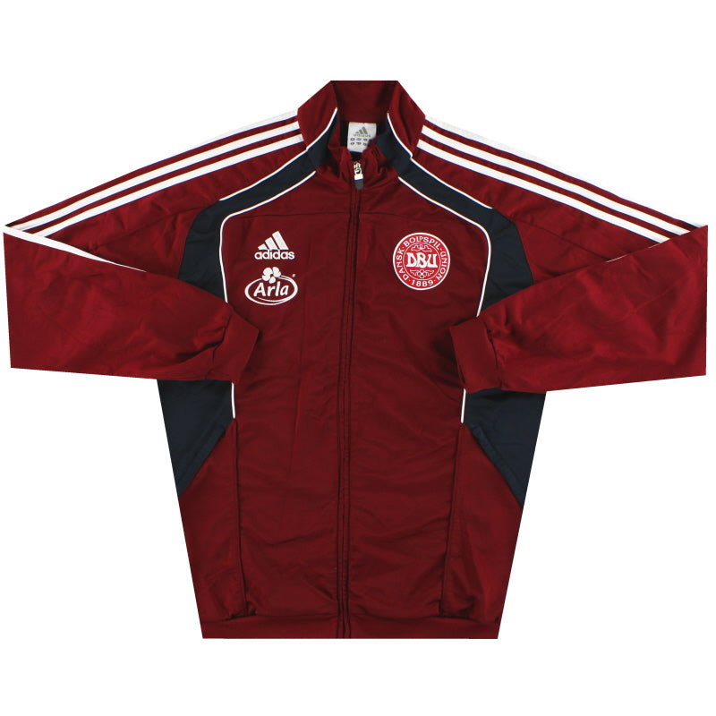 Track jacket as worn when Denmark were competing in the 2010 World Cup when the team failed to make it to the knockout stages after finishing 3rd in their group behind the Netherlands and Japan.