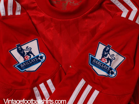 Details - Home shirt as worn when Roy Hodgson took charge of the side, but after a poor run of results replaced by former player and legend Kenny Dalglish, where an improvement in form the side finished 6th, the following season he guided them to the FA Cup Final and Carling Cup triumph, but poor league results wasn't enough to save his job and left at the end of the 2012 campaign