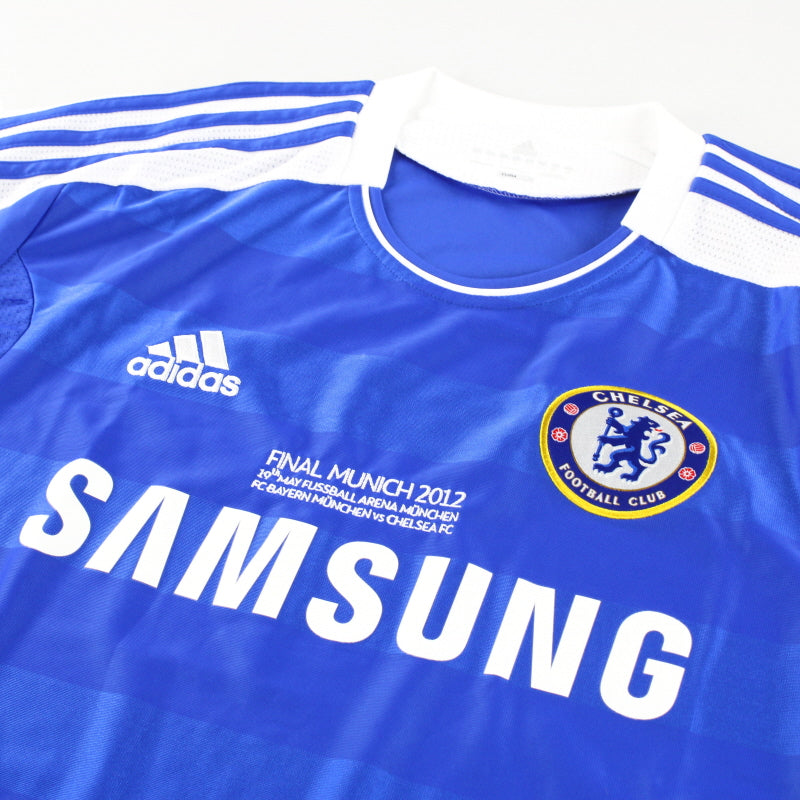 Details - Home shirt as worn when Chelsea finished in 6th place in the Premier League and also won the FA Cup final, beating Liverpool 2-1 in the final. Also worn when Chelsea managed to win the Champions League for the first time in the clubs history, beating Bayern Munich 4-3 on penalties after the game finished 1-1 with Didier Drogba scoring the winning penalty.