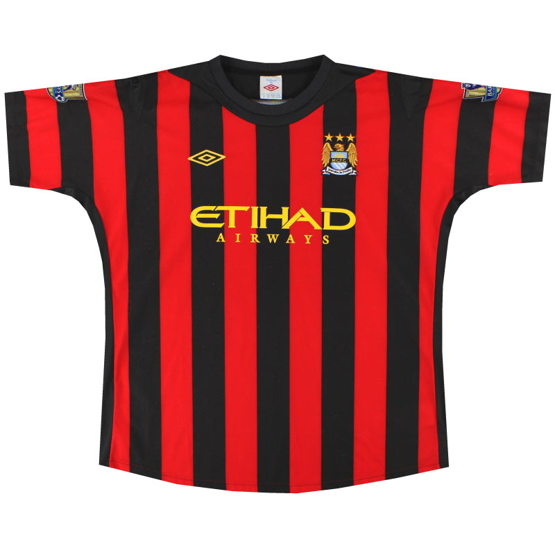 Details - Away as worn when Manchester City won a top division title for the first time since the 1967-68 season and their first in the Premier League era. City went into the final game of the season level on points with local rivals Manchester United, but ahead on goal difference, and were looking likely to go another year without a league title until 2 goals in injury time of their game against QPR meant the team would finish the season as Premier League champions.