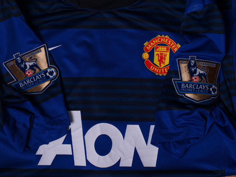 Details - Very rare player shirt believed to be worn by English defender Rio Ferdinand in the 2011-12 Premier League campaign. the side were looking to defend their crown and were aiming for an unprecedented 20th League title, with the side battling their neighbours all season for top spot, things came to a dramatic end on the last day, with City trailing at home and United winning at Sunderland, the title looked to be theirs, but two injury time goals from City broke United hearts, in all Ferdinand made 30 League appearances in this campaign, and will no doubt go down as one of United greatest defenders, very collectable