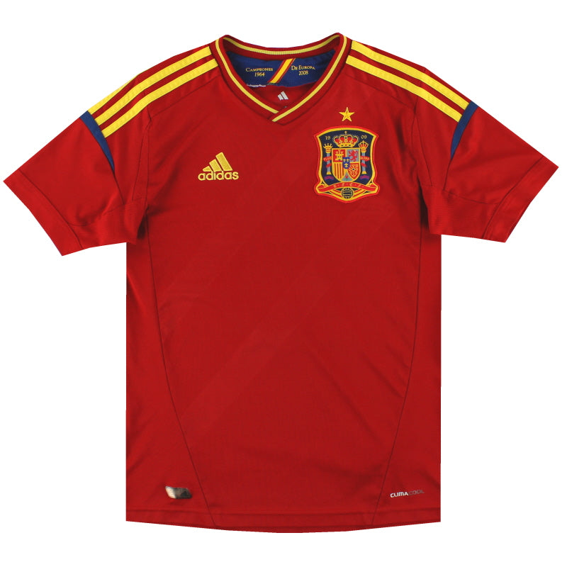 Details - Home shirt as worn when Spain were competing in the 2012 European Championship when they successfully defended their title from their 2008 win, beating Italy 4-0 in the final.