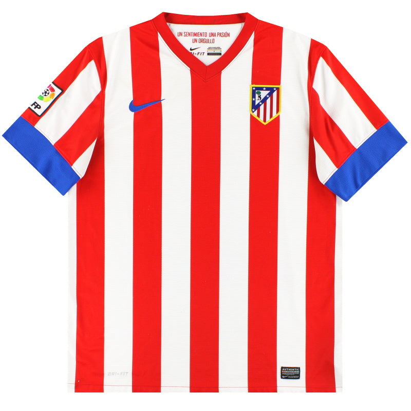 Home shirt as worn when Atletico Madrid finished 3rd in La Liga and won the Copa del Rey, losing 2-1 after extra time against Real Madrid. Also worn when Atletico Madrid were knocked out in the last 32 of the Europa League, losing 2-1 on aggregate against Rubin Kazan.