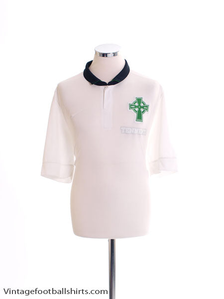 Details - Third shirt as worn when Celtic finished as champions of the Scottish Premier League, finishing 16 points ahead of second placed Motherwell, and won the Scottish Cup, beating Hibernian 3-0 in the final. Also worn when Celtic made it to the last 16 of the Champions League after finishing as runners up in their group after beating Barcelona 2-1 at Celtic Park to finish 2 points ahead of third placed Benfica.