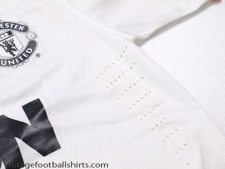 Details - Away shirt as worn in Sir Alex Ferguson's final season in charge of Manchester United before retirement. Manchester United won the Premier League title for the 20th time after a Robin van Persie hat trick against Aston Villa clinched it with 4 games still to play. Then it was used as a third shirt the next season when David Moyes took charge of Manchester United but failed to impress and was eventually sacked and replaced by interim manager Ryan Giggs.