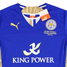 Home shirt as worn when Leicester City were promoted to the Premier League after finishing as champions of the Championship, finishing 9 points ahead of second place.
