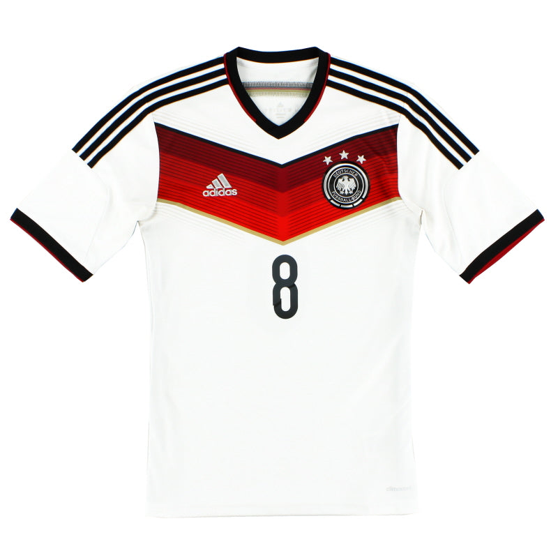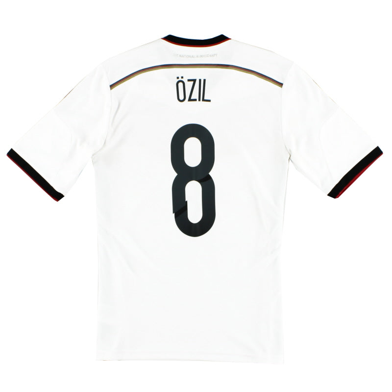 Details - Home shirt as worn when Germany were competing in the 2014 World Cup, Germany made it to the final of the competition, playing Argentina for a record third time, beating Argentina 1-0 in extra time with Mario Gotze scoring the only goal of the game as Germany became World Cup winners for the fourth time.