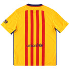 Details - Away shirt as worn when Barcelona finished as champions of La Liga, finishing 1 point ahead of second placed Real Madrid, and also won the Copa del Rey after beating Sevilla 2-0 in the final with Jordi Alba and Neymar scoring the goals for Barcelona in extra time. Also worn when Barcelona were knocked out in the quarter finals of the Champions League, losing 3-2 on aggregate against Atletico Madrid.