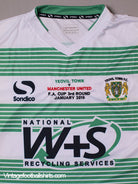Details - Home shirt as worn by the side as they faced Manchester United at Huish Park in the FA Cup 3rd Round. A 9,264 sell-out saw them eventually lose 2-0 after holding them for an hour.