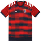 Details - Pre match top as worn when Bayern Munich finished as champions of the Bundesliga, finishing 21 points ahead of second placed Schalke, and made it to the final of the DFB-Pokal, losing 3-1 against Eintracht Frankfurt. Also worn when Bayern were knocked out in the semi finals of the Champions League, losing 4-3 on aggregate against Real Madrid.