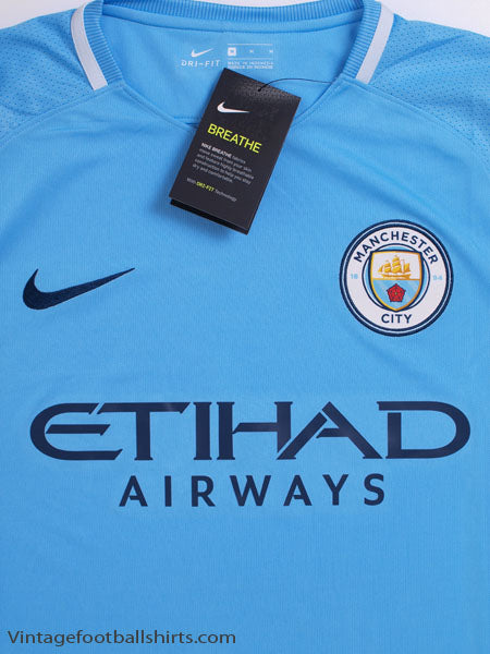 Details - Home shirt as worn when Manchester City finished as champions of the Premier League, finishing the season with a Premier League record 100 points, and also won the League Cup, beating Arsenal 3-0 in the final. Also worn when Manchester City were knocked out in the quarter finals of the Champions league, losing 5-1 on aggregate against Liverpool.
