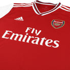 Arsenal's 2019-2020 adidas home kit takes cues from the early 1990s, featuring a traditional collar and a striking red, white, and navy colour scheme.