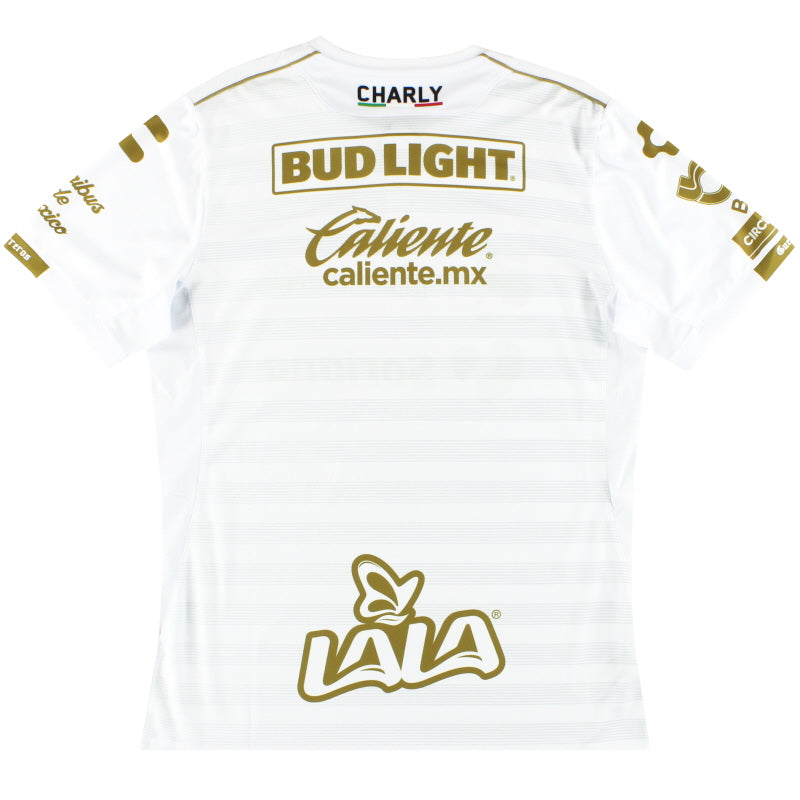 Details - White and gold third shirt as worn when Santos Laguna finished 2nd in the Liga MX. Also had a great run in the CONCACAF Champions League reaching the semi finals , winning over New York Red Bulls in both legs 2-0, 4-2 respectively. However in the semi-finals , the team lost 5-3 on aggregate against Tigres UAN