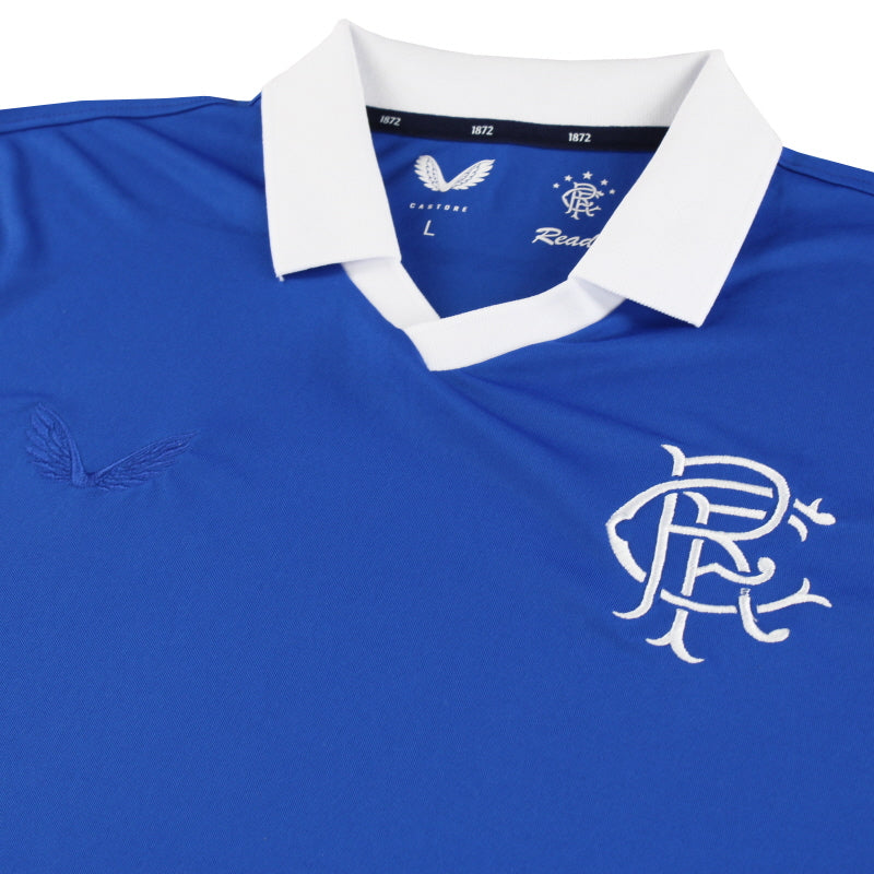 Details - Special Edition Retro home shirt released during the 2020-21 season which features the woven scroll crest that is a tribute to the kit worn in the 1972 European Cup Winners' Cup final when Rangers beat Dynamo Moscow 3-2. The shirt also features five star to the upper reverse representing the clubs 'First to Fifty' Scottish League Titles. The shirt made it debut in the quarter finals of the Scottish League Cup when Rangers played St Mirren.