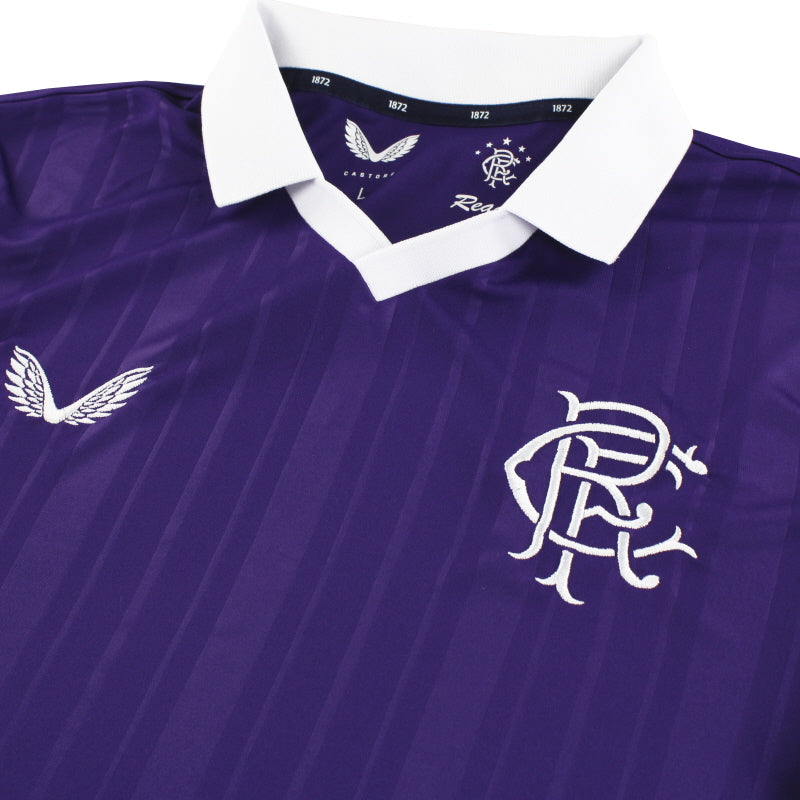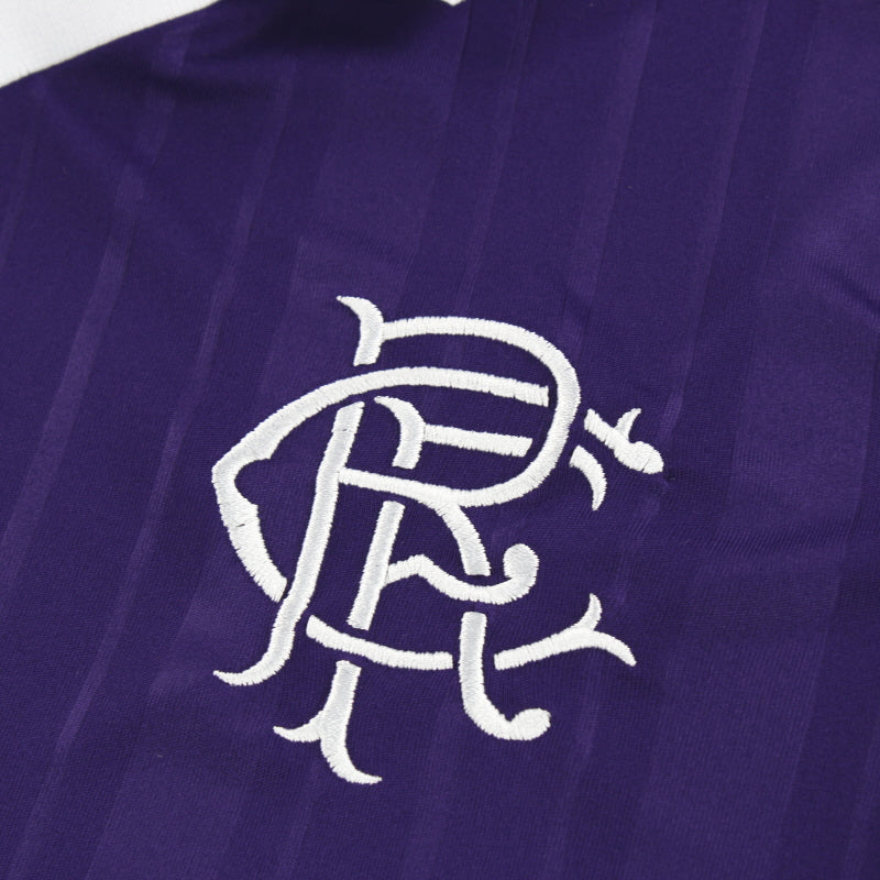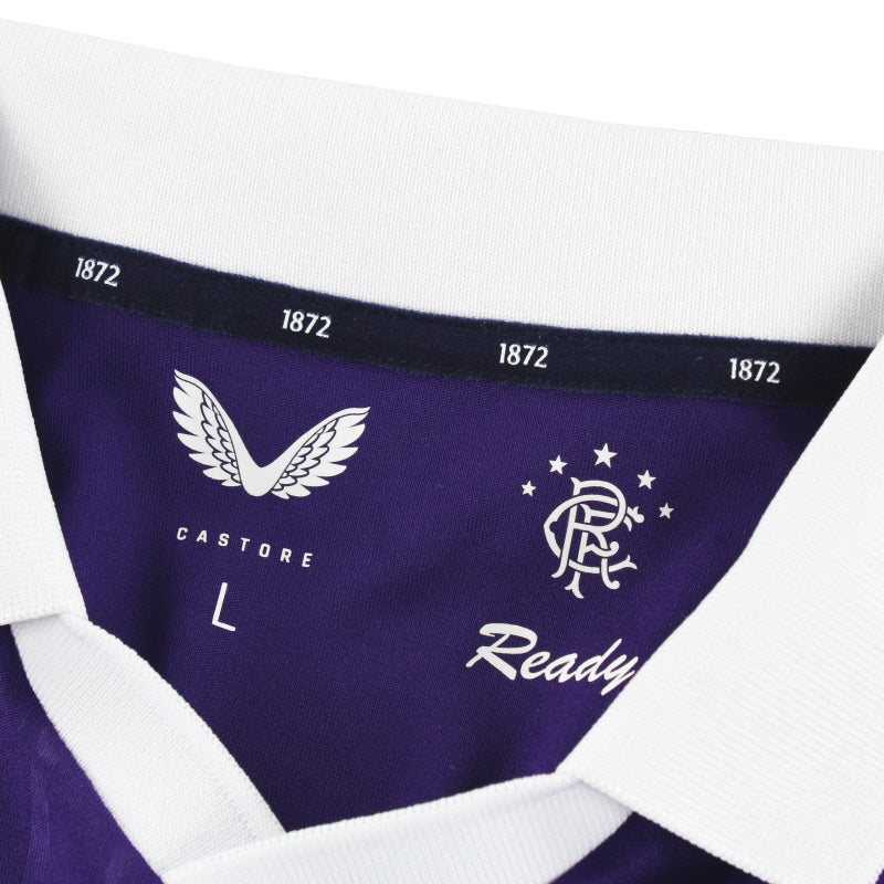 Details - Retro purple goalkeeper shirt released during the 2020-21 season which features the woven scroll crest is a tribute to some of the teams most memorable kits from the 1990s. The shirt also features five star to the upper reverse representing the clubs 'First to Fifty' Scottish League Titles. The shirt made it debut in the quarter finals of the Scottish League Cup when Rangers played St Mirren.