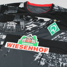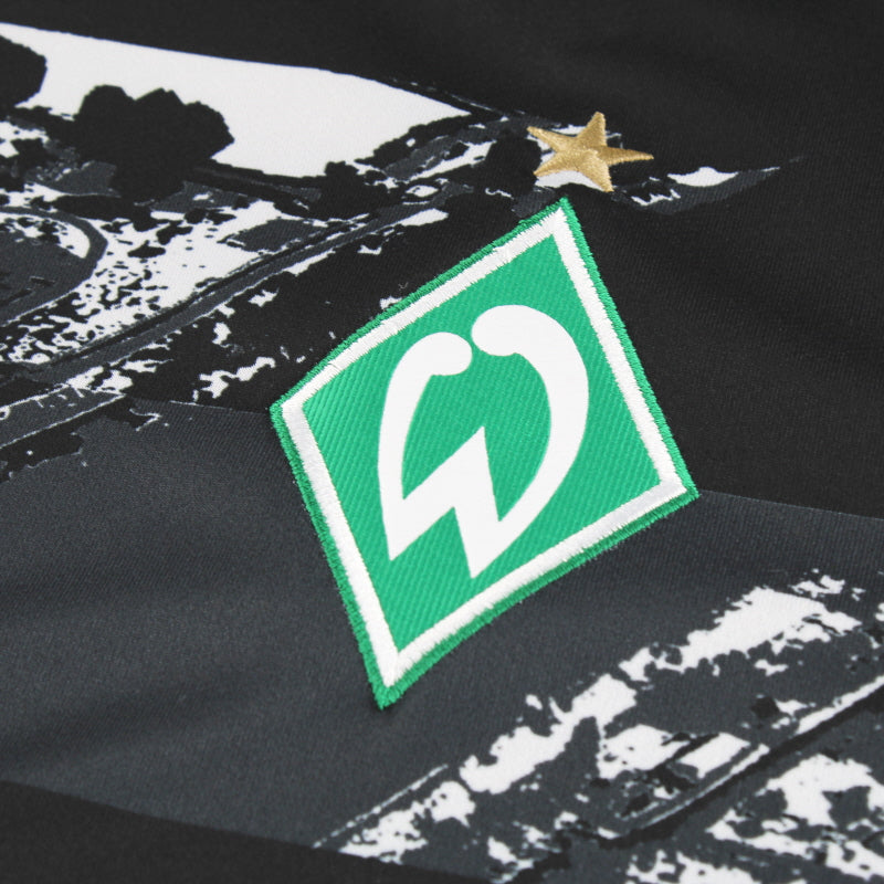 Details - Third shirt worn by Werder Bremen when the team were relegated from the Bundesliga after having remained in the top-flight of German Football for 40 years after their promotion in the 1980-81 season. Werder Bremen remained outside of the relegation places for much of the season but failed to win all of their last 11 games slipping into the automatic relegation zone on the last day of the season after losing 4-2 against Borussia Monchengladbach. The 'city' shirt features images of the clubs home stadium, the Westerstadion, and the images are arranged to emulate the city of Bremen flag.