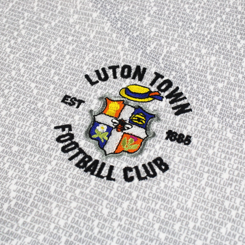 Details - Unique third shirt which shows the loyalty of local supporter legends who stepped up to help out at the begining of the coronavirus pandemic, a list of names can be seen throughout the shirt. This was worn when Luton Town finished 5th in the Championship, norrowly missing out on promotion via the play-offs when they lost out to Huddersfield in the semi-finals. Also had a great run in the F.A Cup reaching the fifth round when they got knocked out by Premier League giants Chelsea