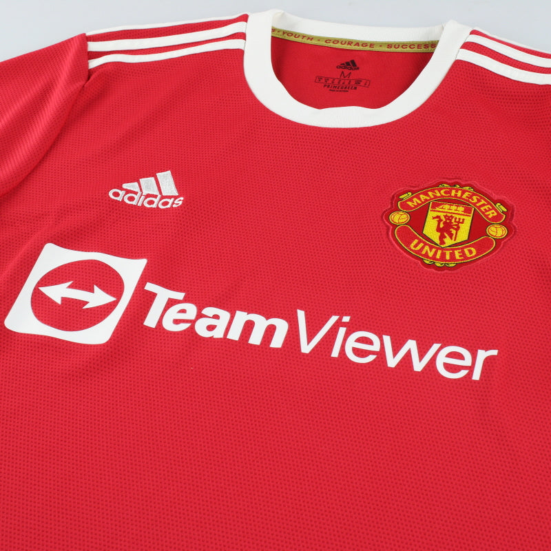 Home shirt as worn when Manchester United were hoping to mount a title challenge during the season following a second placed finish in the previous campaign. However, despite the acquisitions of Jadon Sancho, Raphael Varane and Cristiano Ronaldo, Manchester United could only manage a 6th place finish in the Premier League under Ralf Rangnick after he replaced Ole Gunnar Solskjaer following a poor run of results in which saw the team win only 1 out of 7 Premier League games.