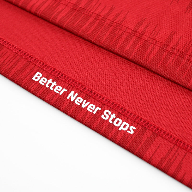 Features - Tailored fit, honeycombed air-permeable mesh fabric is optimal for quickly wicking away moisture, heat pressed crest and branding