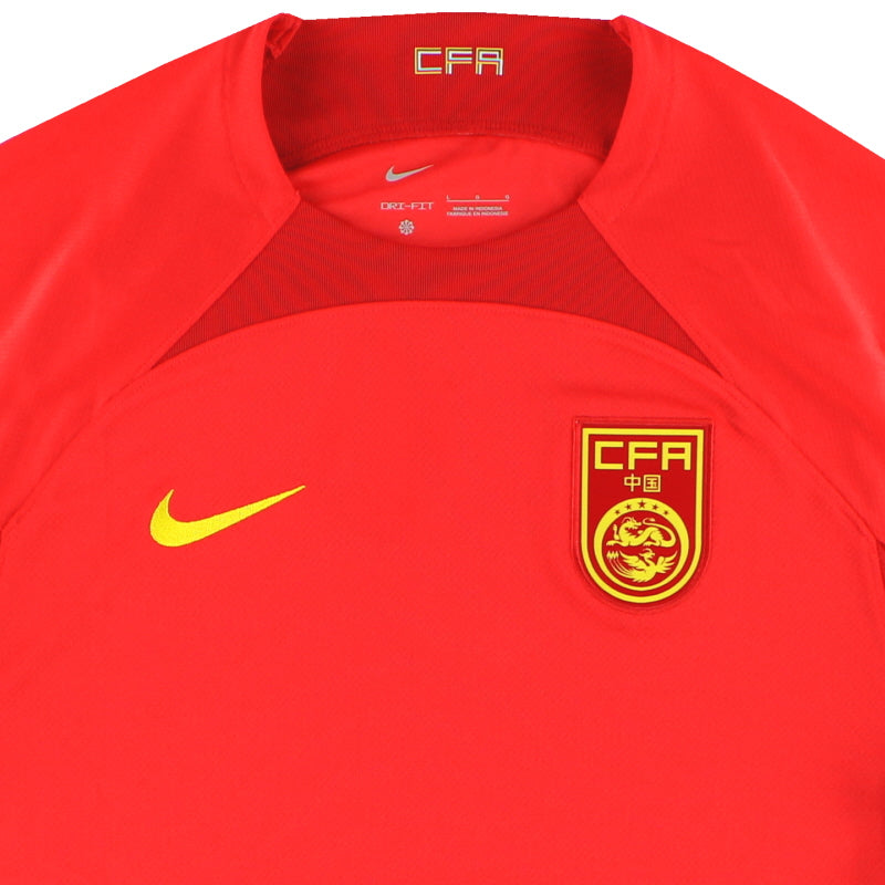 Home shirt as worn when China were competing for a spot in the 2022 World Cup in Qatar, but once again unable to secure a spot after losses to Brazil and Turkey in Group stages.