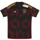 Created with fans in mind, this Germany jersey is crafted from recycled materials. Always striving for more, Germany’s pursuit of success never slows, no matter their past achievements. Inspired by the national flag, this adidas away jersey features a blurred "D" for "Deutschland," symbolizing the energetic and dynamic style of the current team. Designed for both pride and comfort, it includes woven team details and moisture-wicking AEROREADY technology.