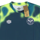 The 24/25 Brentford warm up top has a pixelated heat map graphic design and Umbro Pro training badges to front .