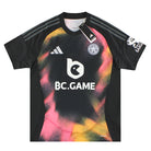 Away shirt is a striking celebration of the club's cultural identity, blending bold design with modern performance. The predominantly black shirt is adorned with vivid beam orange and acid red spray motifs visually capturing the city's vibrant street art