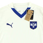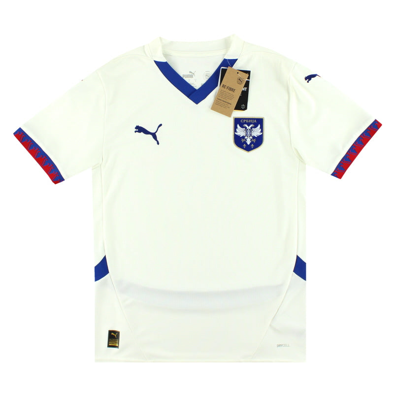 Away shirt features sleeve cuffs adorned with a red mountain graphic, inspired by the unique landscape of Đavolja Varoš (Devil's Town) in southern Serbia. Đavolja Varoš is a striking rock formation made up of around 200 earth pyramids or "towers," situated on Radan Mountain in the municipality of Kuršumlija, southern Serbia.