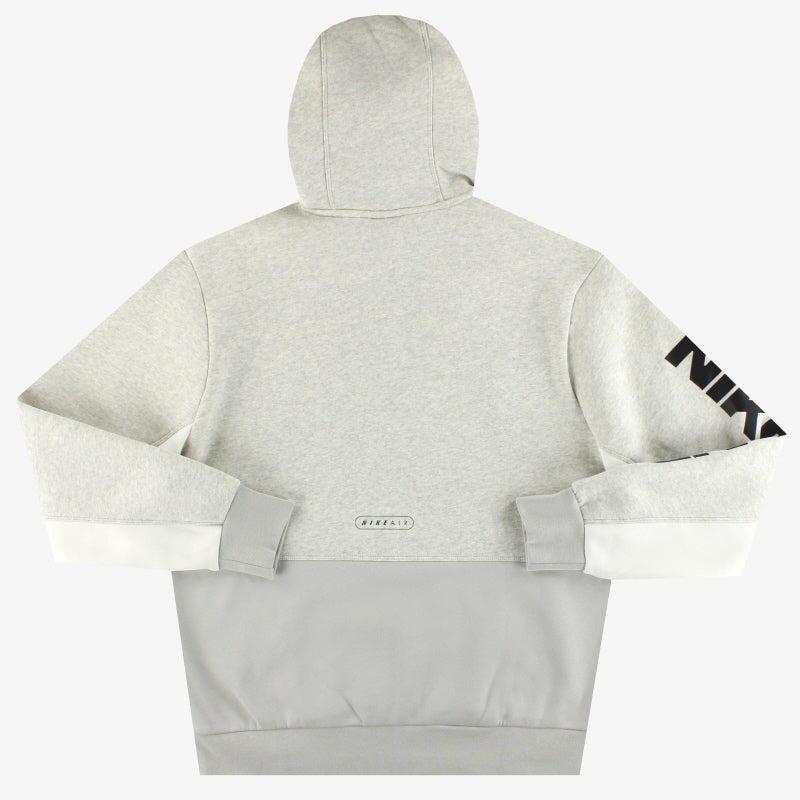 The Nike brushed-back hoodie in grey and black colourway is lined with soft fleece to keep you cosy and warm. Featuring the Nike Air oversized swoosh to the front and kangaroo pocket to keep you hands warm and a mesh lined hood for maximum breathability.