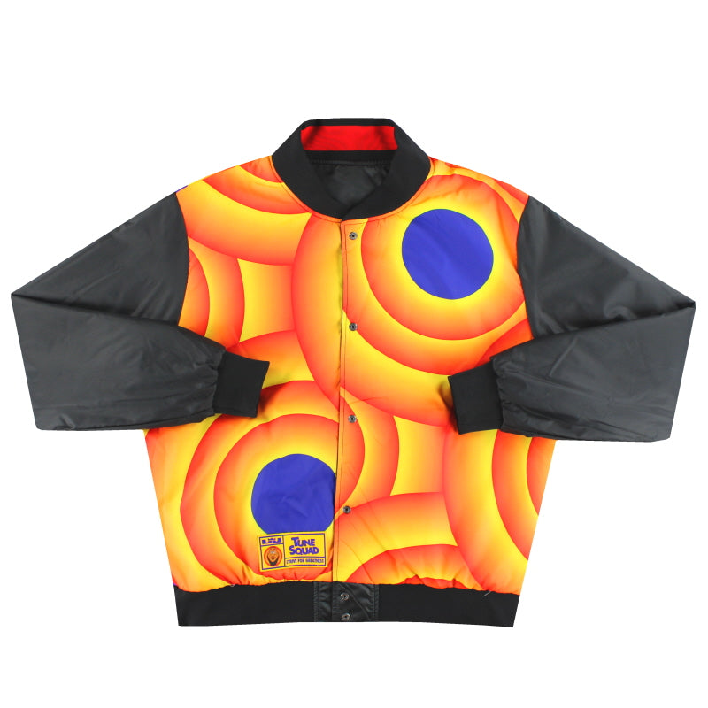 The LeBron x Space Jam Varsity Jacket is a bold fusion of basketball heritage and pop culture, celebrating LeBron James’ starring role in Space Jam: A New Legacy